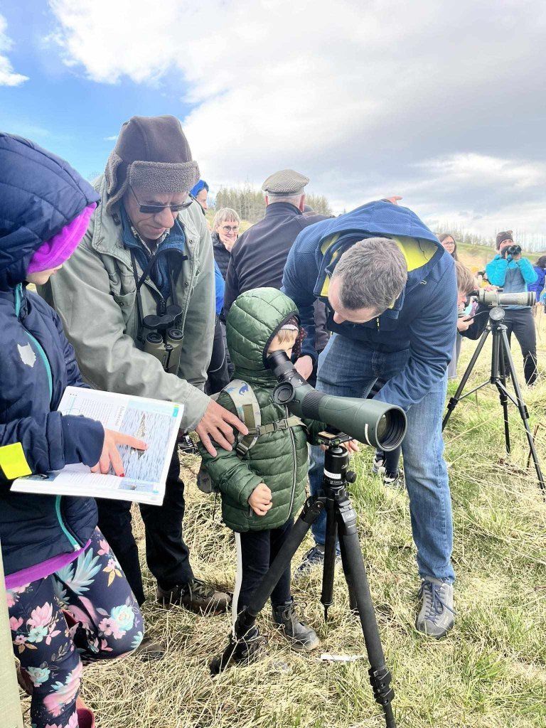 Þessi ferð er að verða að árlegum viðburði hjá FFA og verður alltaf vinsælli og vinsælli. Þeir félagar Jón Magg og Sverrir leiddu hópinn þann 22. maí inn að Krsitnestjörn þar sem hægt er að skoða margar fuglategundir. Eins og sjá má skein áhuginn úr andliti bæði barna og fullorðinna. Myndirnar tók Fjóla K. Helgadóttir.