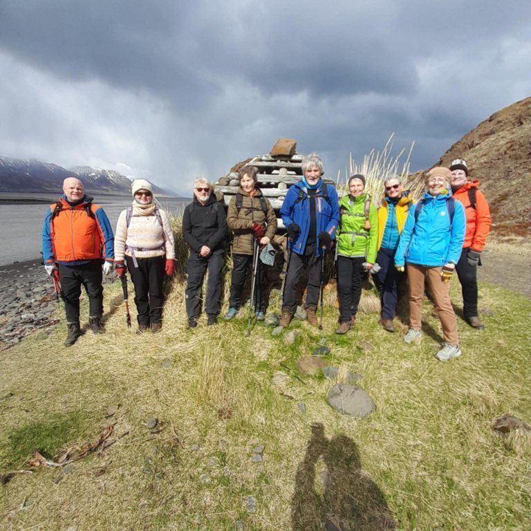 Það var hress hópur sem lagði land undir fót í Skagafjörðinn að morgni 10. maí. Þau létu vafasamt veðurútlit ekki hindra sig í að rölta um Furðuströnd Jóns Ósmanns út að Hegranesvita. Létt og skemmtileg ganga og veðurguðirnir gengu í lið með hópnum, þurrt og nokkuð bjart meðan á göngunni stóð. Fararstjóri var Jónína Sveinbjörnsdóttir sem tók myndirnar.