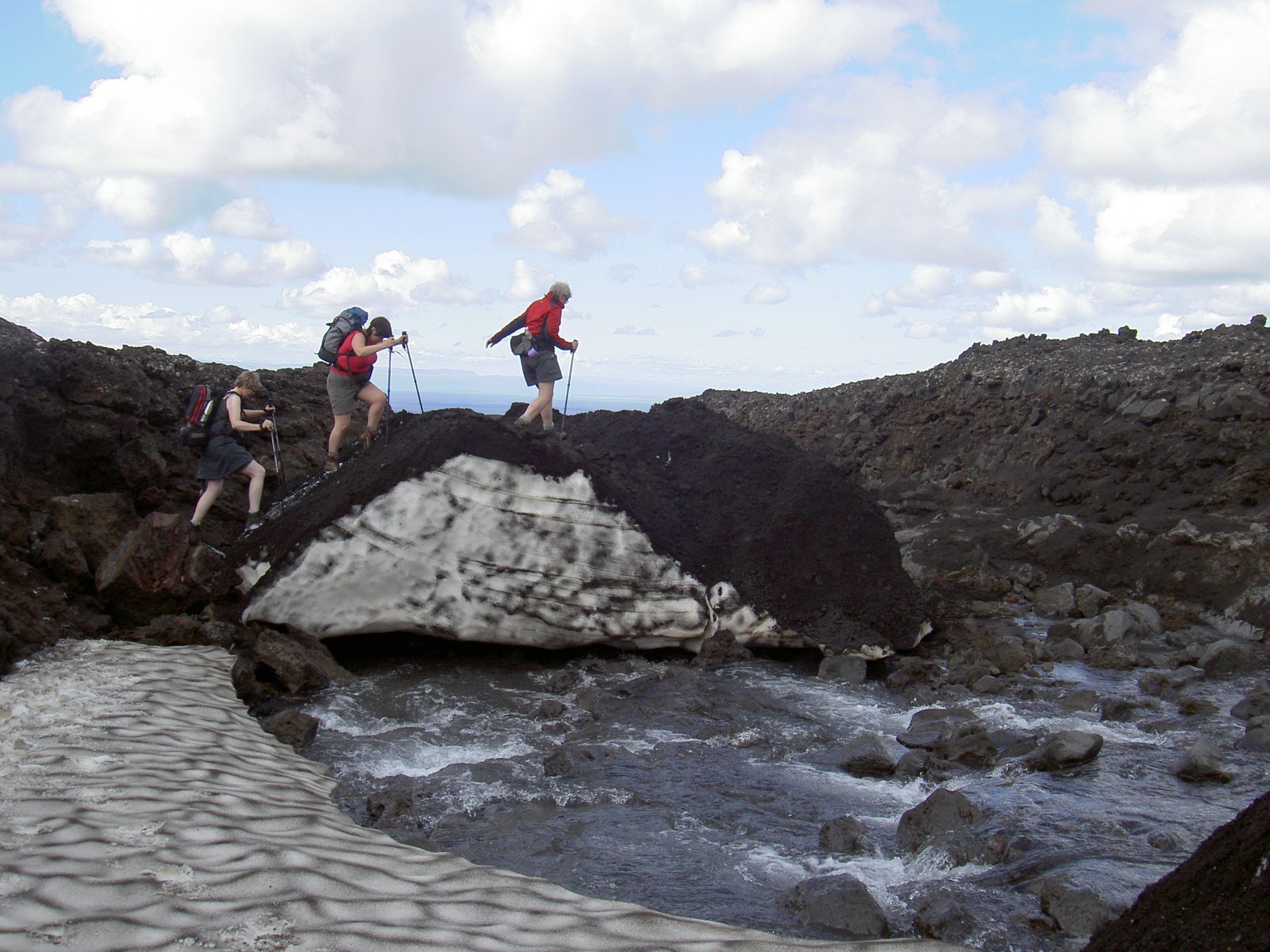 Walk over a snow bridge.