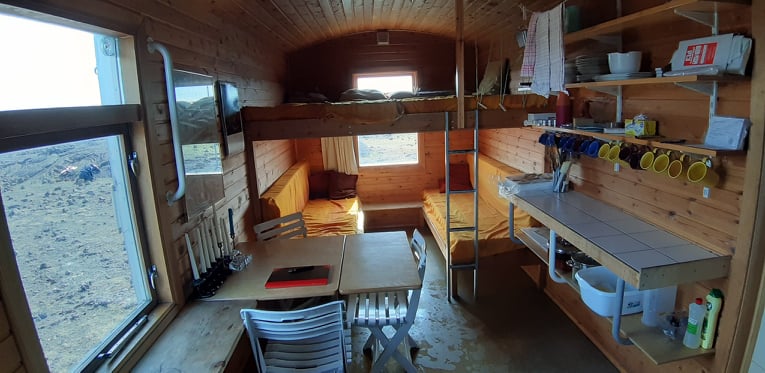 Botni hut is located approx. 650 m SSE from the uppermost origin of Suðurá river, near the NW edge of Ódáðahraun lava field. The hut was built in 1996 and sleeps 16. The hut has a kerosene-operated stove for heating and gas cooker for cooking. Drinking water can be obtained from wells some 200 m S of the hut or from the uppermost tributaries of Suðurá river. The hut remains open all year round. There is a walking route from Dyngjufell hut to Botni (20-22 km) and from Botni to Svartárkot farm (15-16 km).