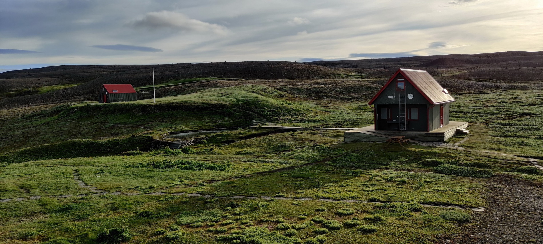 Laugafell hut is located on the high plateau of North Icleand, 15 km NE of Hofsjökull glacier and 20 km SW from the end of Eyjafjarðardalur valley. The old hut was built in 1948-50 and the sanitary house with sleeping accommodation was built in 1994-98. The accommodation in the huts is a sleeping bag accommodation. Guests must bring their own sleeping bags. The old hut sleeps 20 and the sleeping loft in the sanitary house sleeps 12. The houses are heated all year round with geothermally hot water. There is gas for cooking. The sanitary house has WC facilities and changing cubicles for the adjacent swimming pool. There is also a camping site by the hut, we don´t book for the camping site. There is a warden at Laugafell in July and August. The huts are locked in the winter but the toilets and changing facilities are open all year round. The Laugafell area is conveniently located for 4-wheel drive traffic on the northern high ground of Iceland as tracks lead from Laugafell to Eyjafjörður (F821), Skagafjörður (F752), Bárðardalur (F881 and F26) and the South via Sprengisandur (F752 and F26). Phone number (in summer): (+354-) 833-5697.