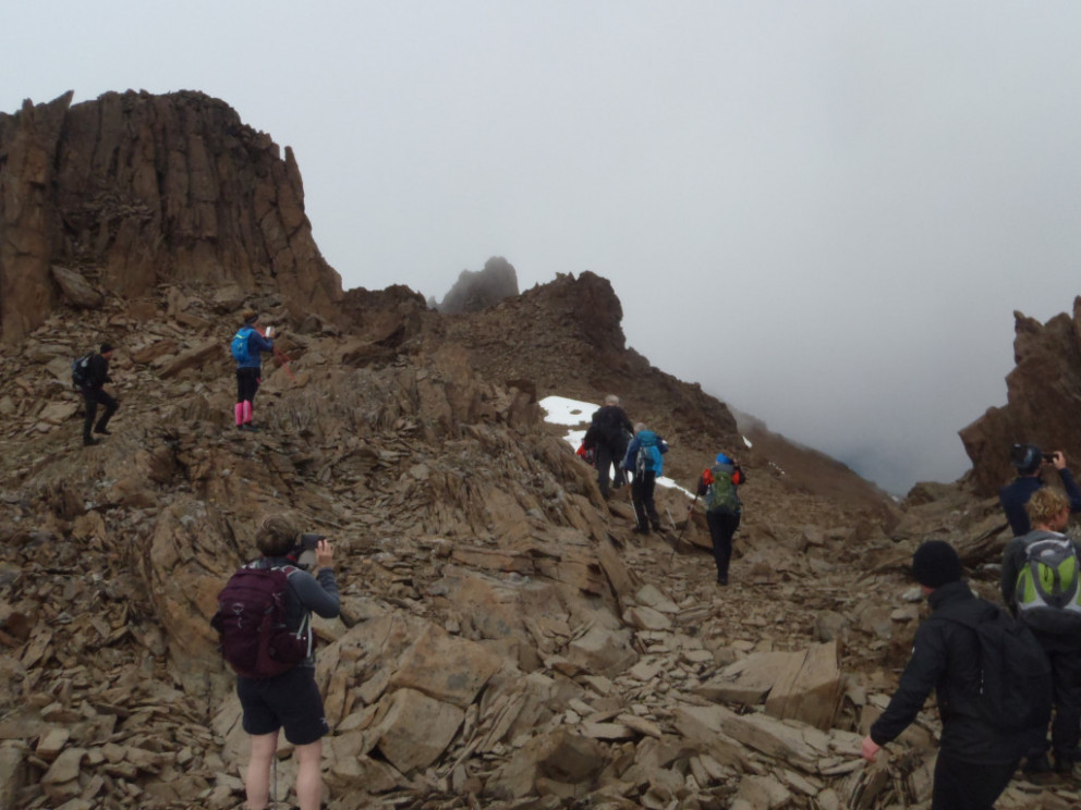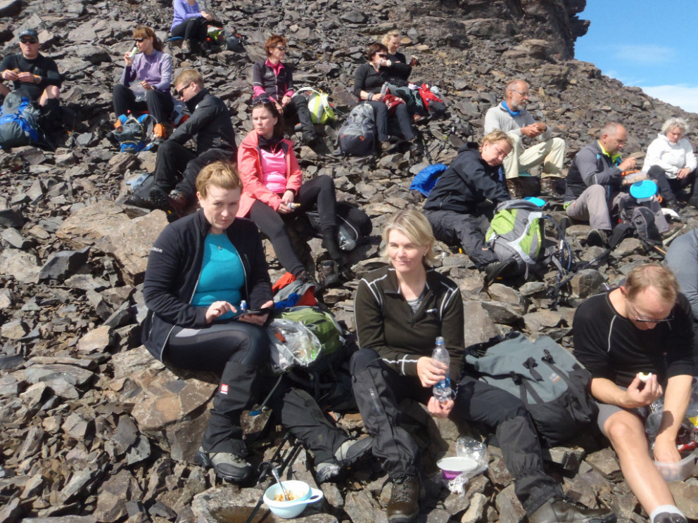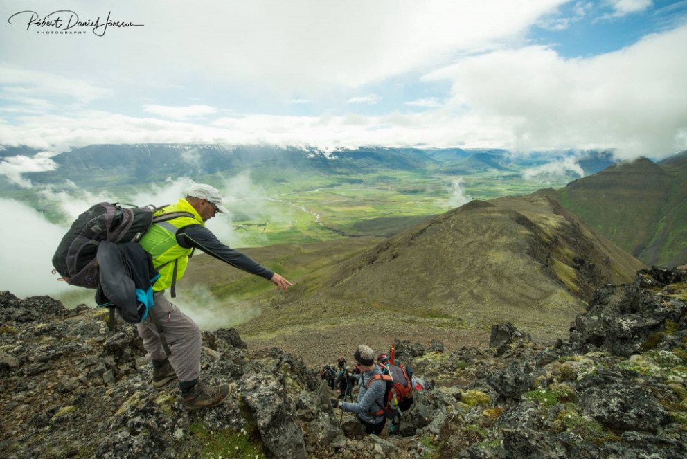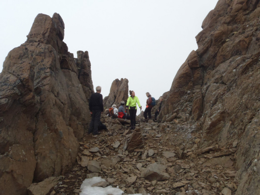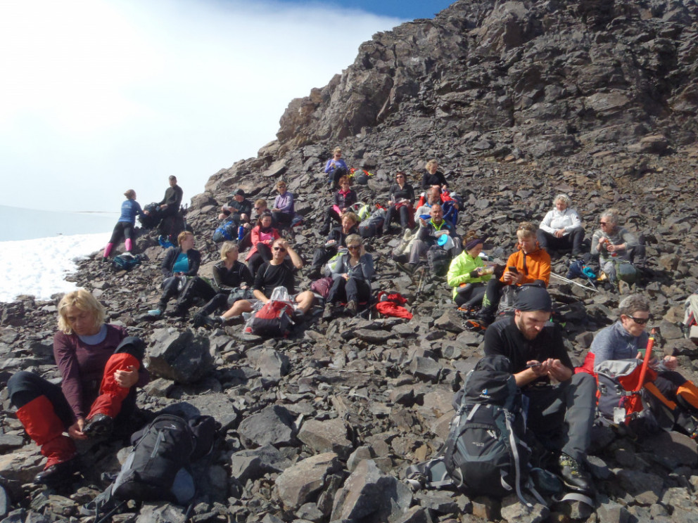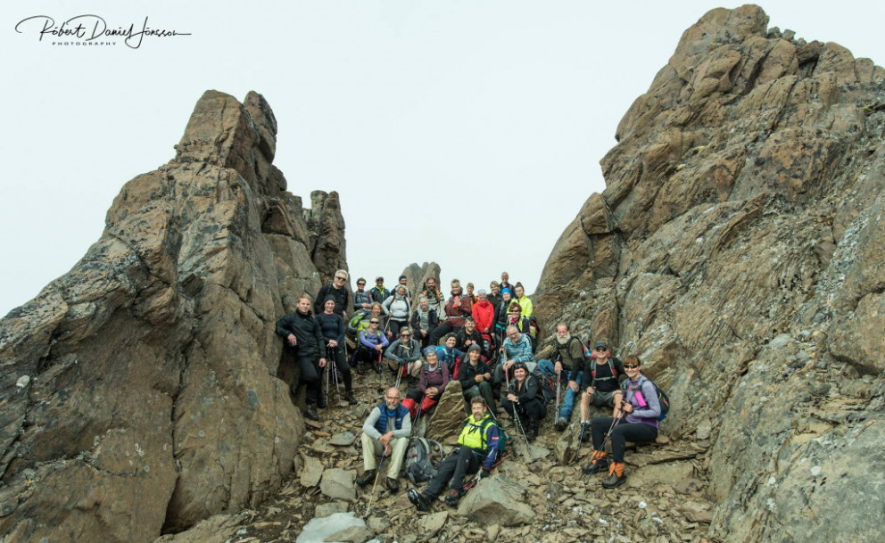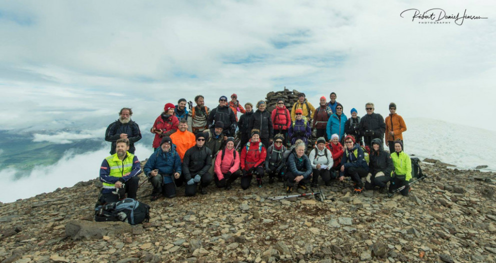 Kerling Sjö tinda ferð. Ekið var inn að Finnastöðum þar sem rúmlega þrjátíu manna hópur lagði af stað upp á Kerlingu. Veður var með ágætum 15 stiga hiti logn en skýjað. Þegar upp á Kerlingu kom vorum við kominn upp í skýin sem komu og fóru svo útsýnið var takmarkað þaðan en það átti eftir að batna. Gengið var niður af Kerlingunni í snjó og voru aðstæður hinar bestu. Búið var að sigra Kerlingu þá voru eftir Hverfandi, Þríklakkar, Bóndi, Stórikrummi, og svo Súlurnar syðri og nyrðri. Ekki vafðist það fyrir þessum hressa og samstíga hóp. Fararstjórar voru Frímann Guðmundsson og Konráð Gunnarsson. Myndir Róbert Daníel Jónsson og Frímann
