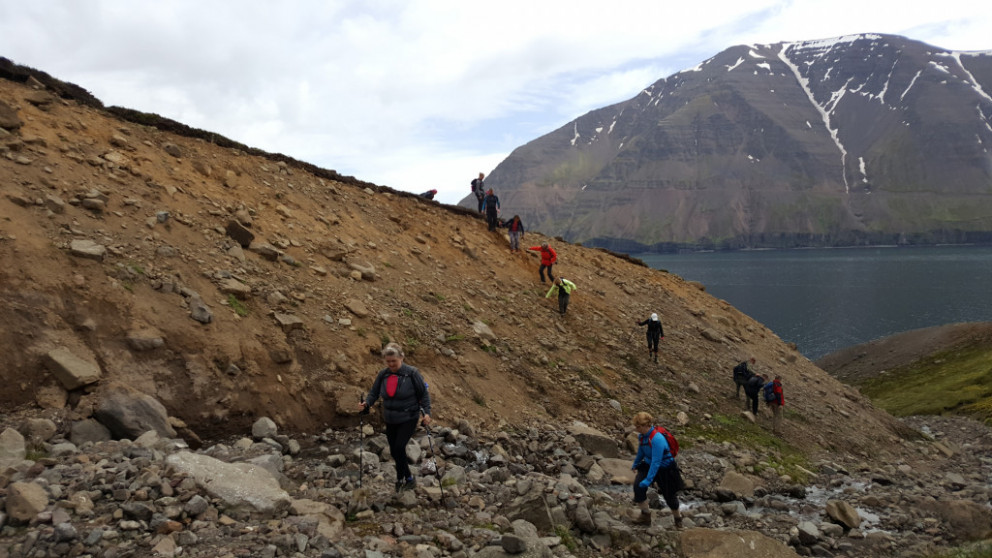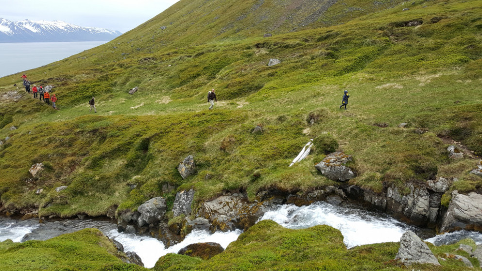 Ferðafélag Akureyrar fór í Fossdal 9. júní. 30 manna hópur lagði af stað frá Kleifum í björtu og góðu veðri. Þægileg gönguleið, fyrir utan Flyðrubekkjargilið, um grónar götur að vitanum á Sauðhólsmel og þaðan var gengið inn Fossdalinn. Hvanndalabjargið, hæsta standberg í sjó fram á Íslandi, blasti við og hömrum girtur Fossdalurinn var tignarlegur. Fararstjóri, Helga Guðnadóttir.