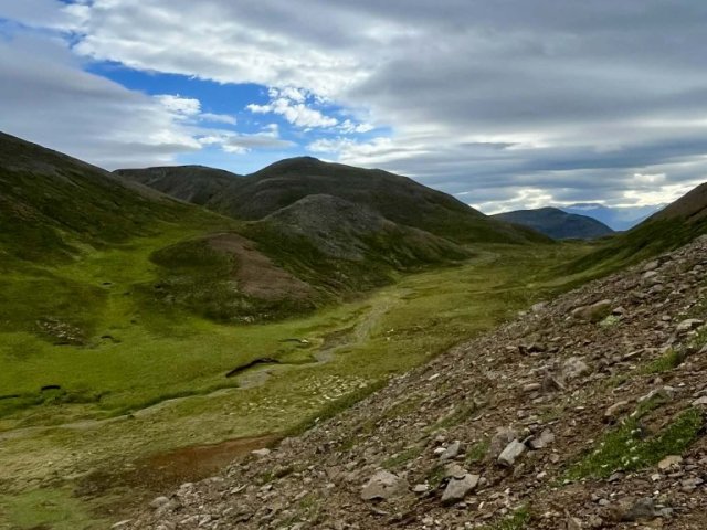 Gengið frá bílastæðinu efst á Víkurskarði og norður Gæsadal að Gæsagili.