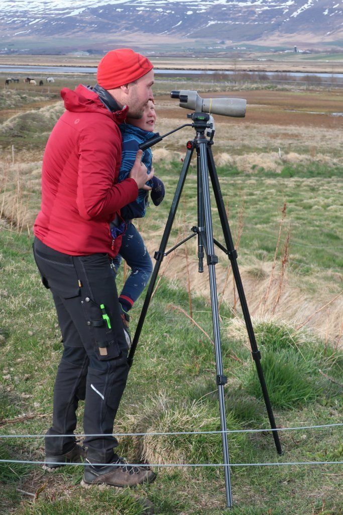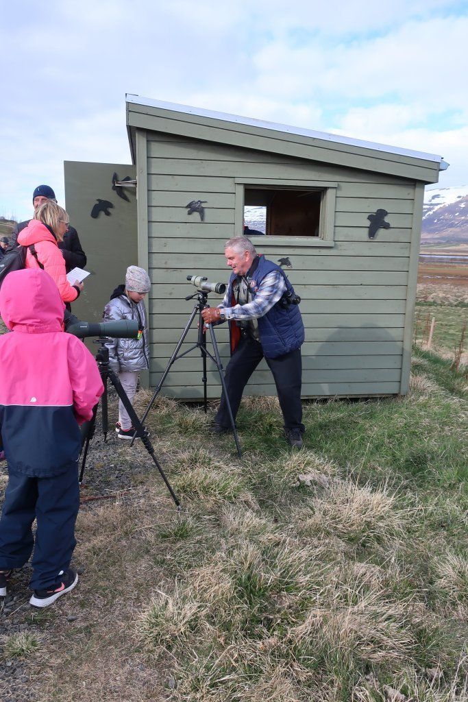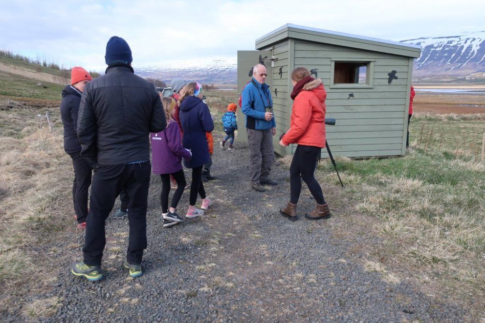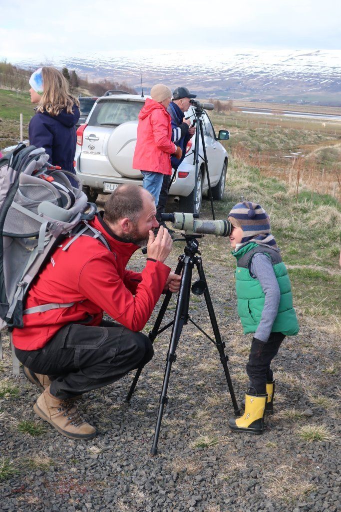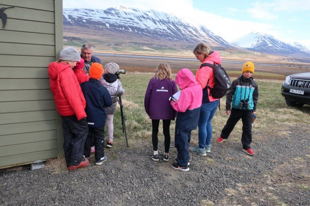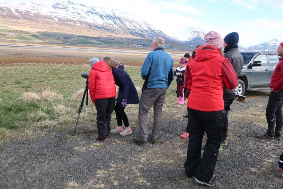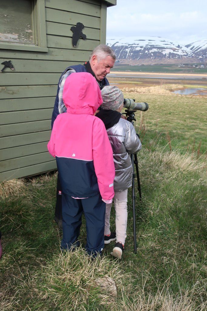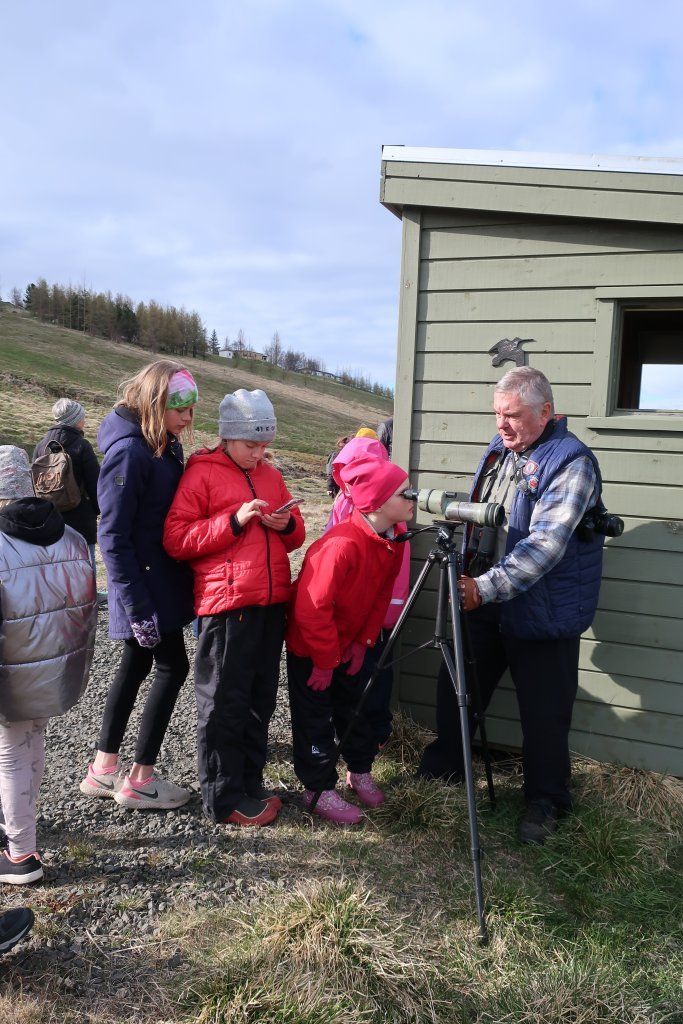 Fyrsta barna- og fjölskylduferð ársins var 19. maí kl. 17. Fyrirhugað var að fara í Naustaborgir en sökum framkvæmda þar þá var lítið að sjá. Því var farið að Kristnestjörn í Eyjafirði. Þrátt fyrir frekar kalsalegt veður þá mættu 14 börn með foreldrum sínum eða afa og ömmu. Jón Magnússon og Sverrir Thorstensen sáu um að fræða börnin um fluglana sem sáust og benda þeim á áhugaverða fugla. Foreldrar og afar og ömmur voru ekki síður spennt. Jón og Sverrir voru með sérstaka sjónauka til að skoða fugla og þótti börnunum það spennandi. Mörg barnanna skráðu hjá sér hvaða fuglategundir þeir sáu. Við þökkum Jóni og Sverri fyrir skemmtilega ferð. Myndir Þorgerður Sigurðardóttir og Fjóla Kristín Helgadóttir.