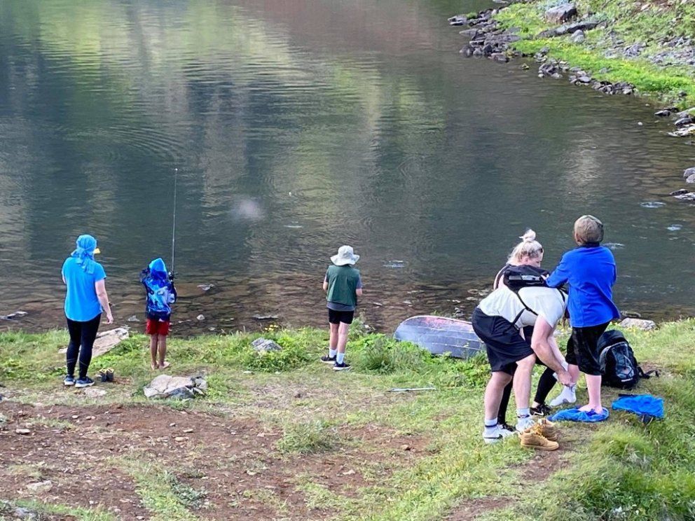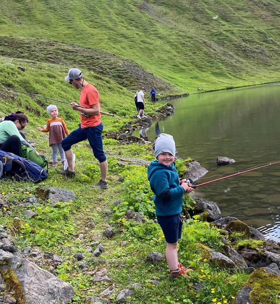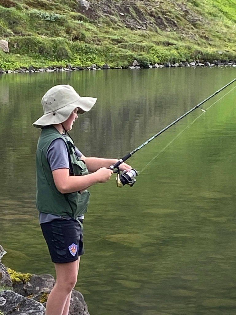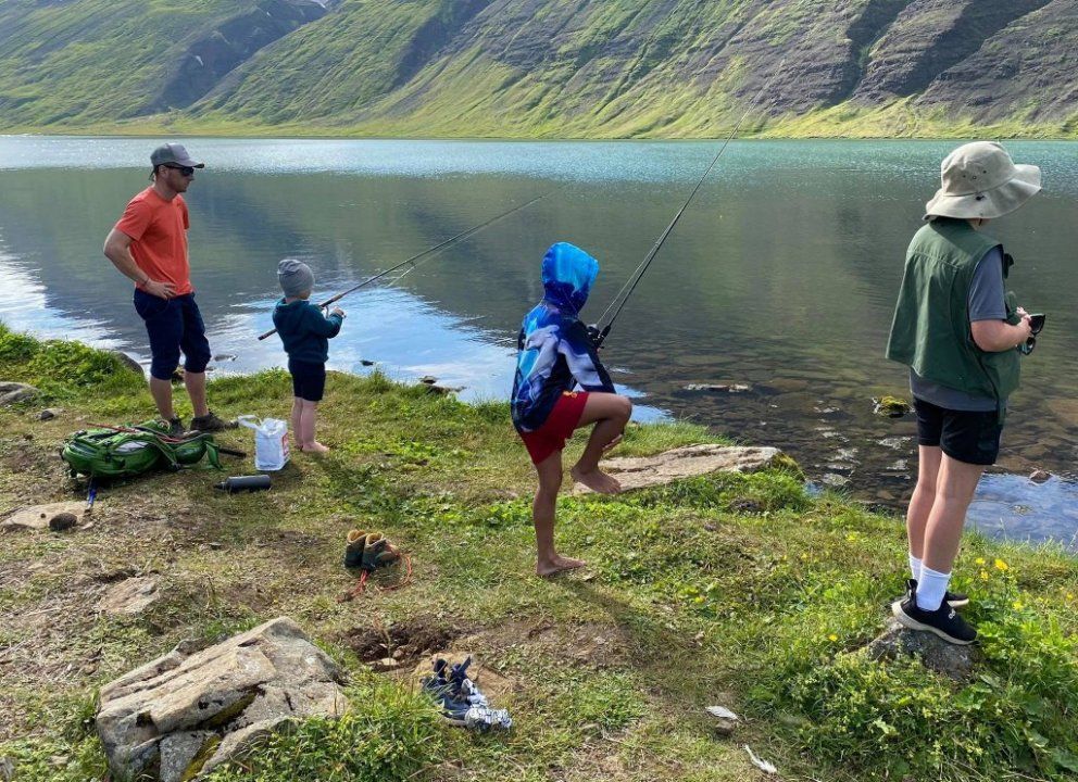 Fyrsta veiðiferðin var farin 8. ágúst að Hraunvatni og gekk í alla staði afar vel. Flugan var reyndar svolítið erfið en börnin létu það merkilega lítið á sig fá. Fararstjórn og myndir Herdís Zóponíasdóttir.
