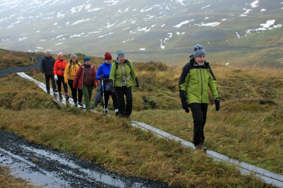 Lagt var af stað frá bílastæðinu ofan við skotsvæðið á Glerárdal þann 9. október og gengið þaðan eftir stíg að Glerárstíflu og hún skoðuð. Farið var yfir brúna á stíflunni, upp á Lambagötuna og eftir henni niður að gömlu göngubrúnni á Gleránni og að bílunum. Fararstjórn og myndir Ingvar Teitsson.