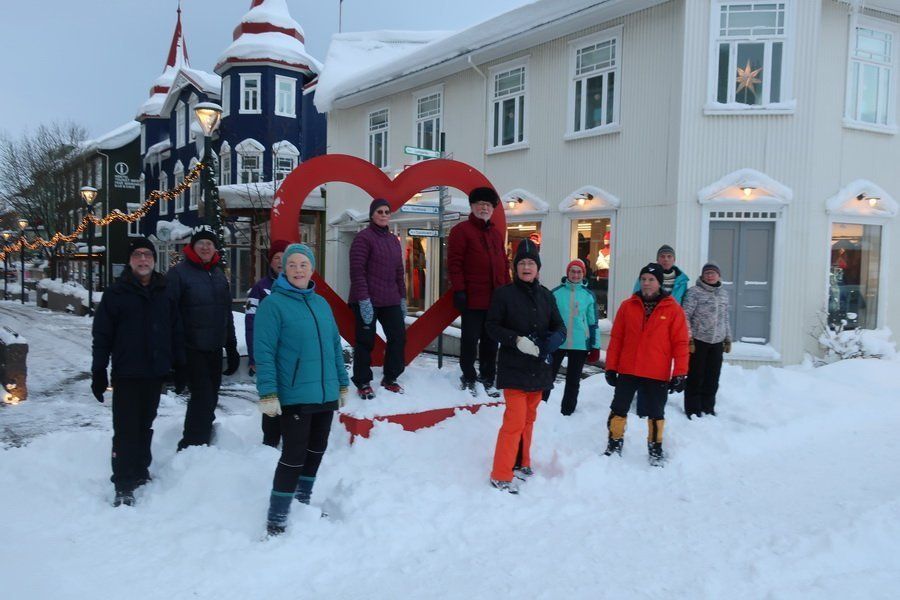 Nýársdagsgöngu FFA þurfti að færa aftur um einn dag vegna veðurs. Talsverð ófærð var í nágenni Akureyrar og var því genginn hringur innanbæjar. Roar Kvam var fararstjóri.