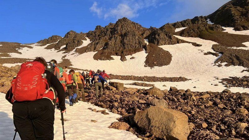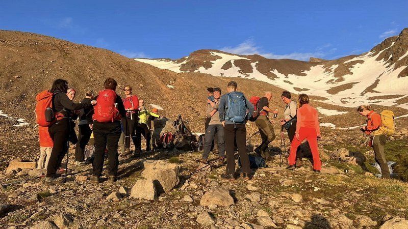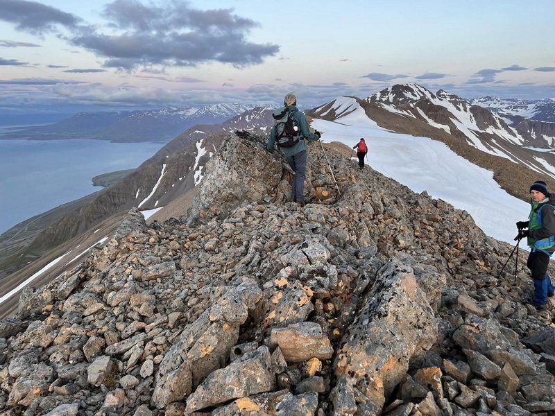 Þriðja ferðin á gönguviku að þessu sinni. Í mörg ár hefur þessi ganga verið á Jónsmessu. Að þessu sinni leiddu þau Bóthildur Sveinsdóttir og Bernard Garritsma hópinn þann 23. júní. Eins og sést á myndunum voru þau heppin með veður og birtu, þó svo skýin hafi aðeins flækst fyrir. Myndirnar tók Kristín M. Jóhannsdóttir.
