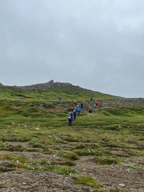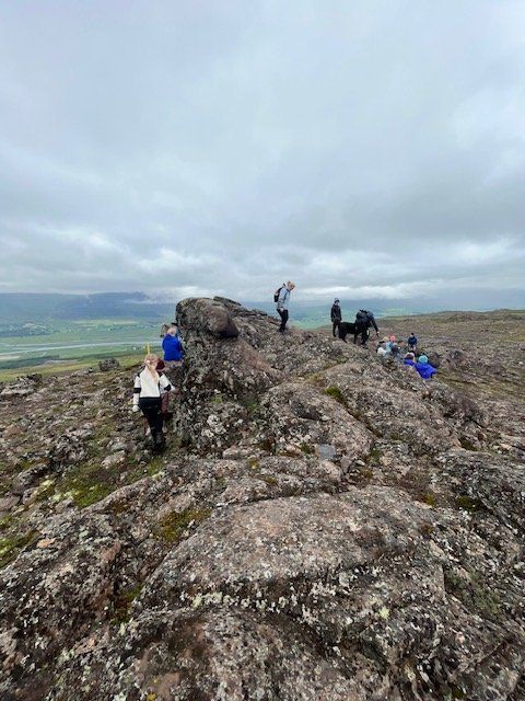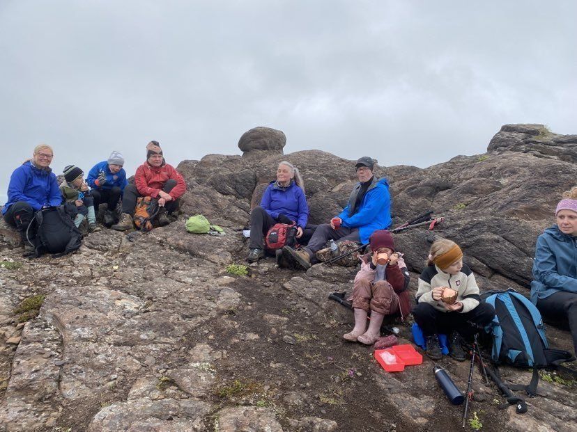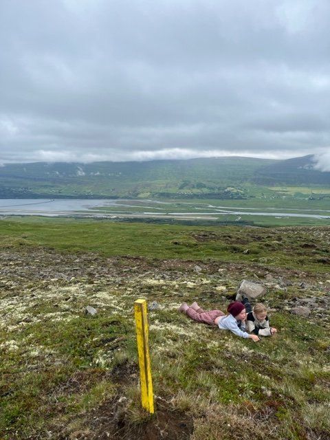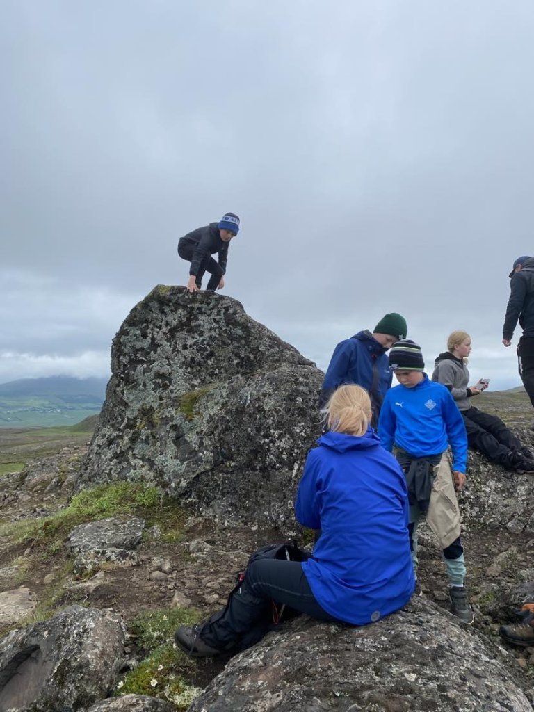 Það voru kátir krakkar ásamt foreldrum sem gengu að Steinmönnum með henni Herdísi Zophoníasóttur laugardaginn 1. júlí.