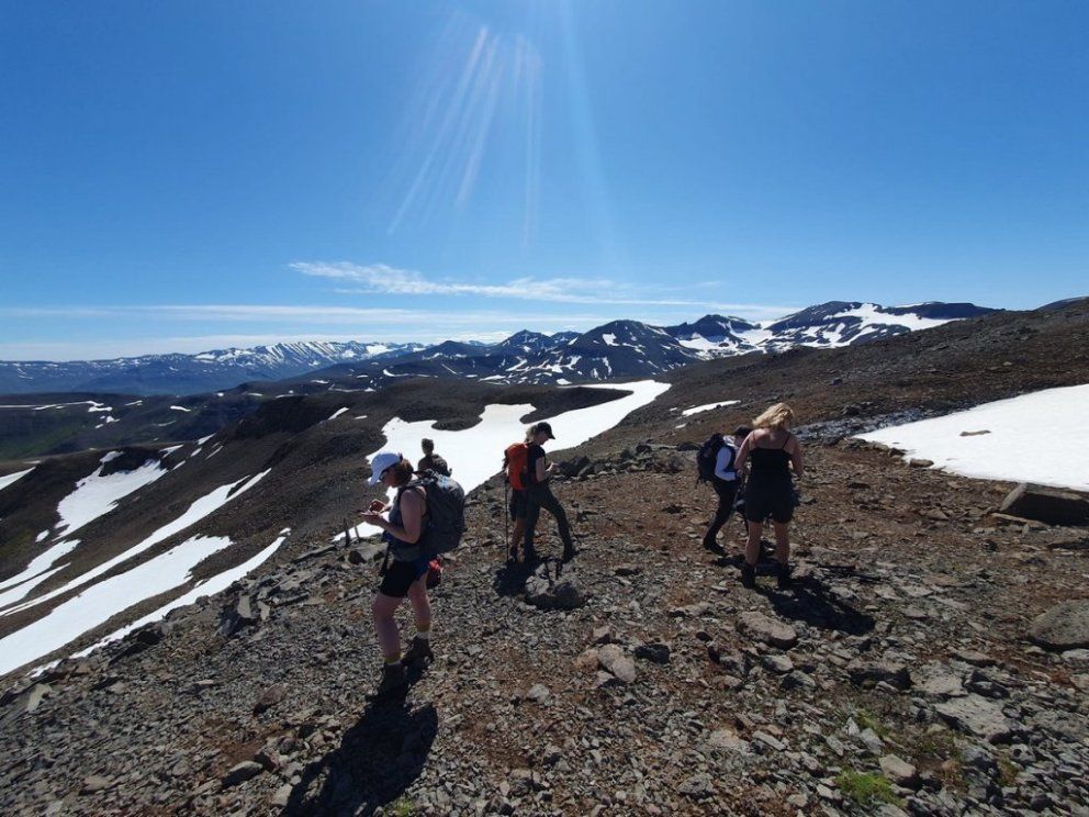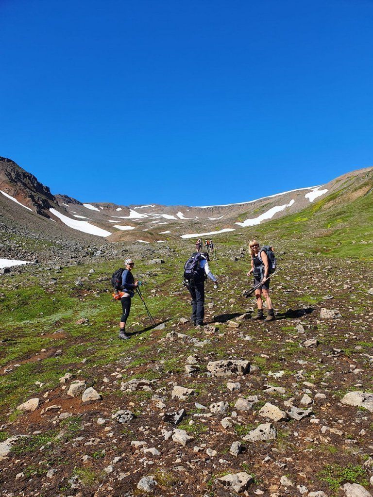 Veðrið lék við þátttakendur í ferðinni um Grímubrekkur þann 8. júlí. Kristján E. Hjartarson leiddi gönguna og Margrét L. Laxdal tók myndirnar.