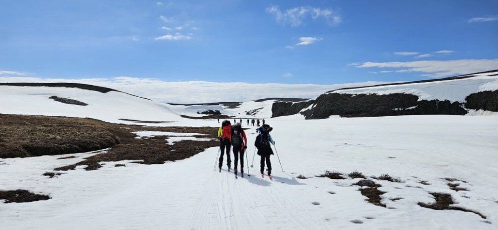 Vel heppnuð skíðaferð í Laugafell var farin helgina 3. - 5. maí. Tæplega 80 km gengnir á einni helgi og umtalsverð hækkun og lækkun. Margir krókar vegna snjóleysis en allt gekk vel, enda hópurinn samstilltur. Hér koma nokkrar myndir frá þátttakendum og fararstjórum sem fanga veður og stemmningu. Myndirnar tóku Aðalsteinn, Halldór, Halldóra, Hafdís, Rebekka og Selma.