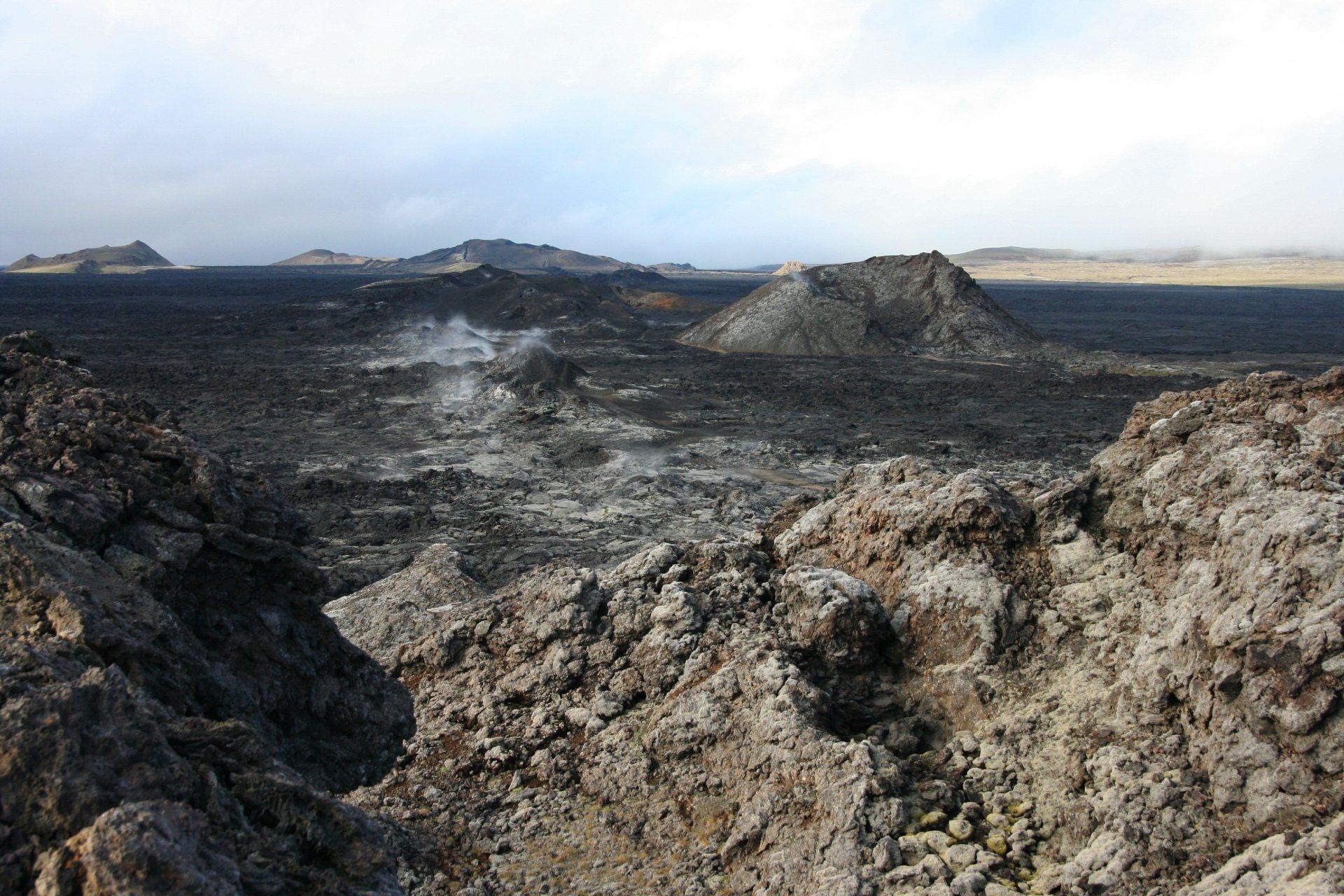Ekið að bílastæði við Leirhnjúk norðan Kröfluvirkjunar. Fyrst er gengið að sprengigígnum Víti og þaðan að Leirhnjúk. Frá Leirhnjúk er fylgt stikaðri leið til Reykjahlíðar sem fylgir að mestu hrauninu frá 1727 sem kallast Eldá. Leiðin liggur við suðurrætur Hlíðarfjalls og hægt að hafa viðkomu á fjallinu. Vegalengd um 15 km og engin hækkun, en 300 m sé gengið á Hlíðarfjall. Selflytja þarf bíla á milli Reykjahlíðar og Leirhnjúks. Athugið að leiðin er grýtt á köflum og nokkuð seinfarin. Gott að hafa flugnanet með til öryggis.