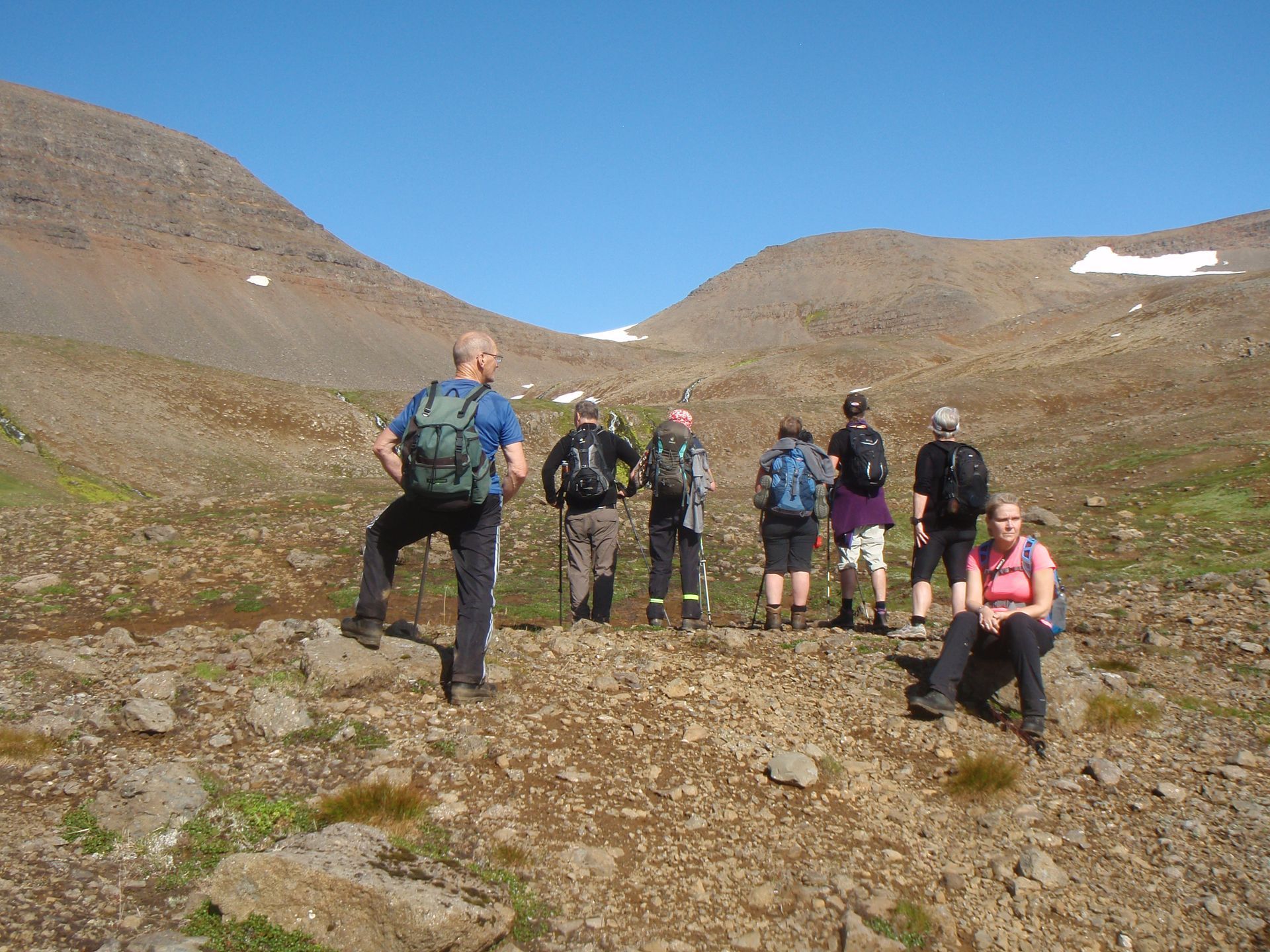 Erfiðar ferðir: Nokkuð langar dagleiðir, 6 - 8 klst. Gengið í fjalllendi og jafnvel lausum skriðum. Getur þurft að vaða erfiðar ár. Ef gist er þá er það oftast í húsum og þá þarf að bera svefnpoka.