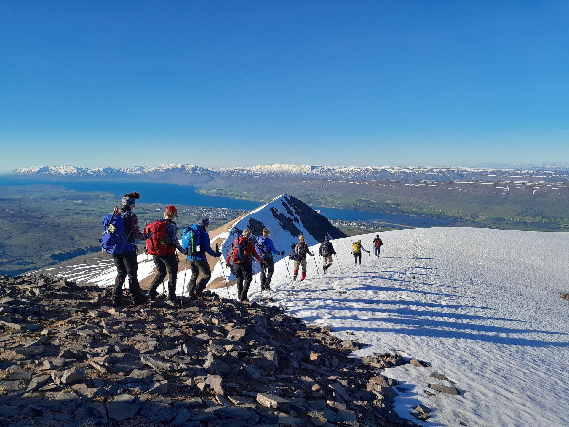 Ekið á einkabílum að bílastæðinu við Súluveg þar sem bílarnir eru skildir eftir. Rúta ekur þátttakendum að Finnastöðum þaðan sem gengið er á Kerlingu 1538 m, hæsta fjall í byggð á Íslandi. Síðan er gengið norður eftir tindunum; Hverfanda 1320 m, Þríklökkum 1360 m, Bónda 1350 m, Litla Krumma, Stóra Krumma, Syðri-Súlu 1213 m, Ytri-Súlu 1143 m og niður í Glerárdal þar sem bílar þátttakenda bíða.