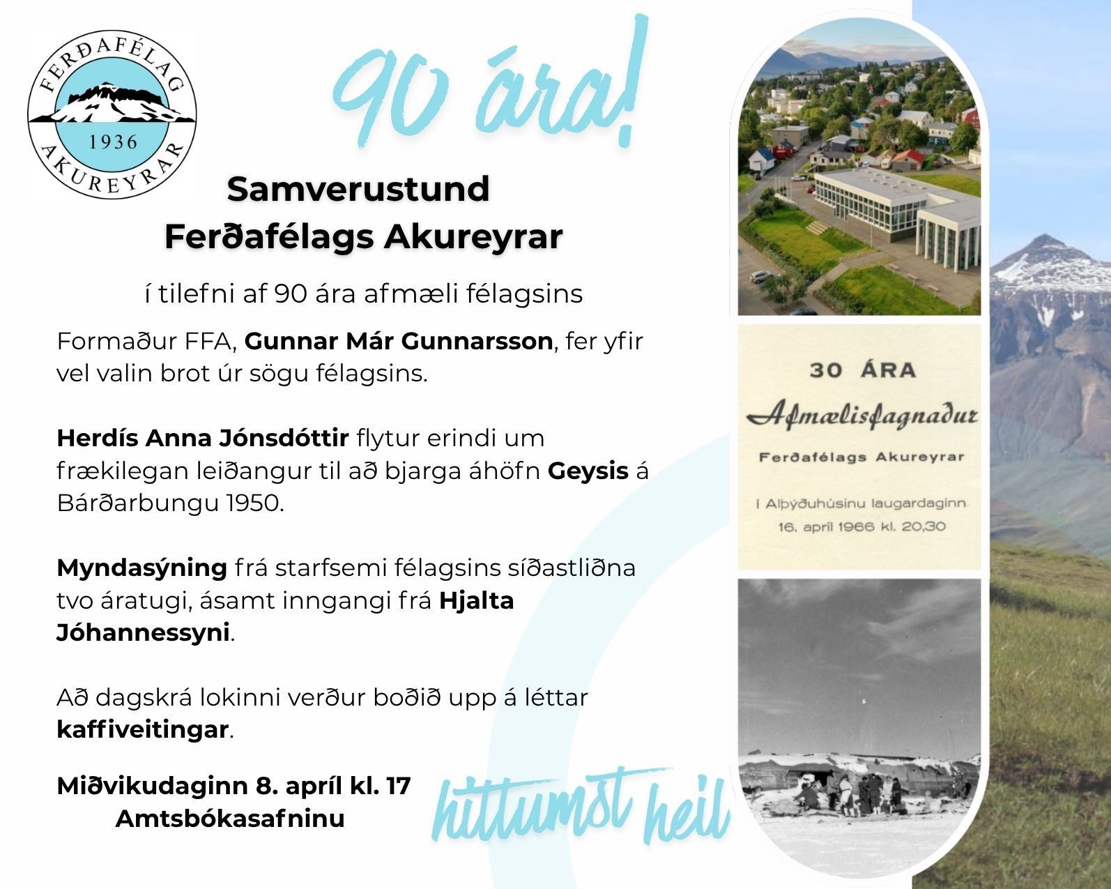 Í tilefni af 90 ára afmæli félagsins verður dagskrá í Amtsbókasafninu miðvikudaginn 8. apríl kl. 17.
